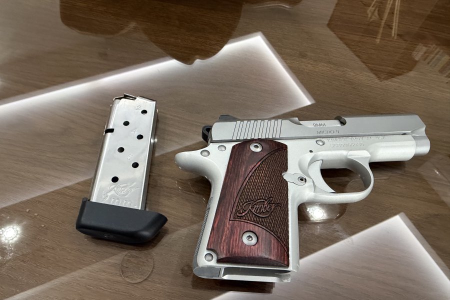 Kimber Micro 9 mm. taşıma ruhsatlı silahım sıfır olup, hiç atış yapılmamıştır.1911 model ile aynı üretim bandından çıkmıştır.7 mermi kapasitelidir.Yedek şarjörü ve kutusu mevcuttur.Hafif ve kompak yapısı ile gizli taşımaya en uygun silahlardan birisidir.