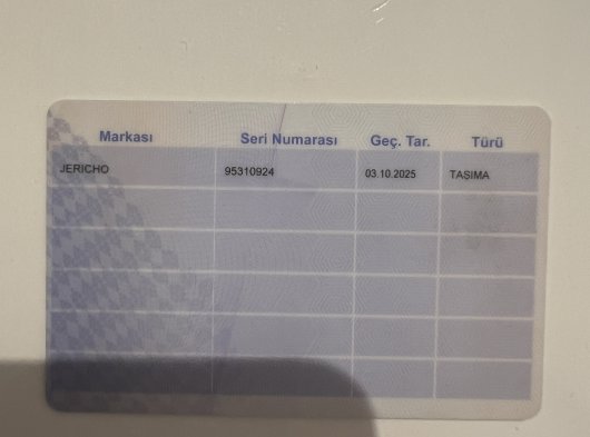 | Ruhsat Durumu | Taşıma |