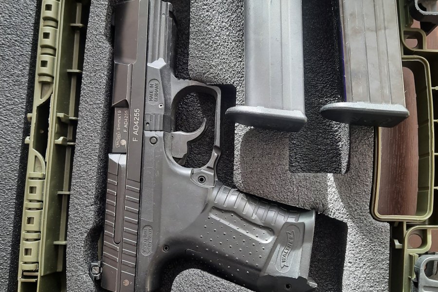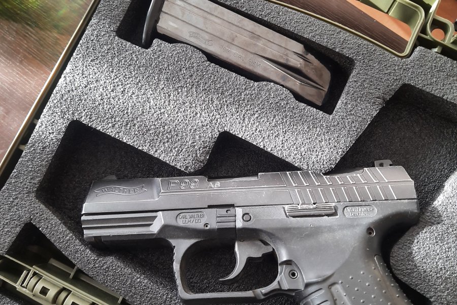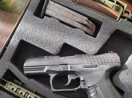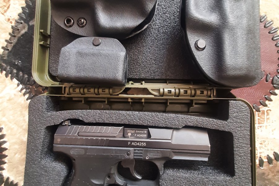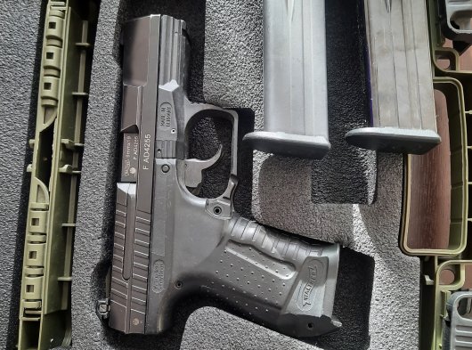 Alman yapımı Walter p99 as 9 mm çaplı 15 +1 tabanca yedek şarjör lu kutusunda en fazla 50 adet atış yapıldı 3 adet çok özel belde tasima ithal kilifli