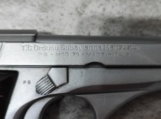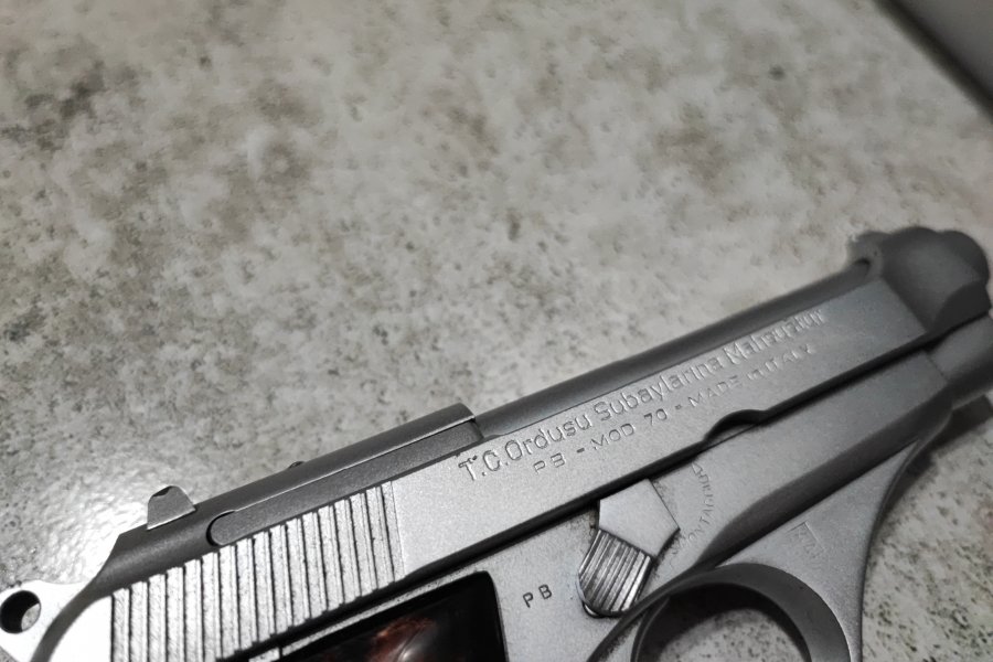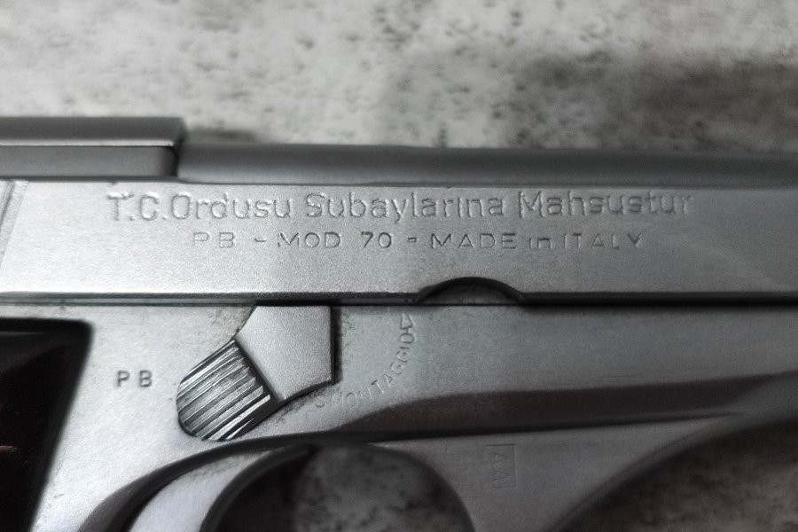Memurdan, subay silahı. Ruhsat almaya haiz kişiler rahatsız edebilir Beretta Mod 70