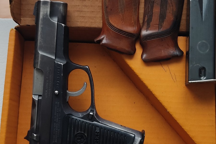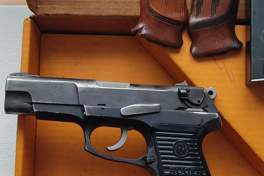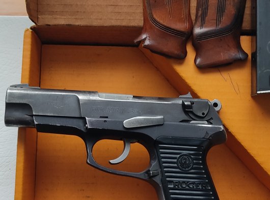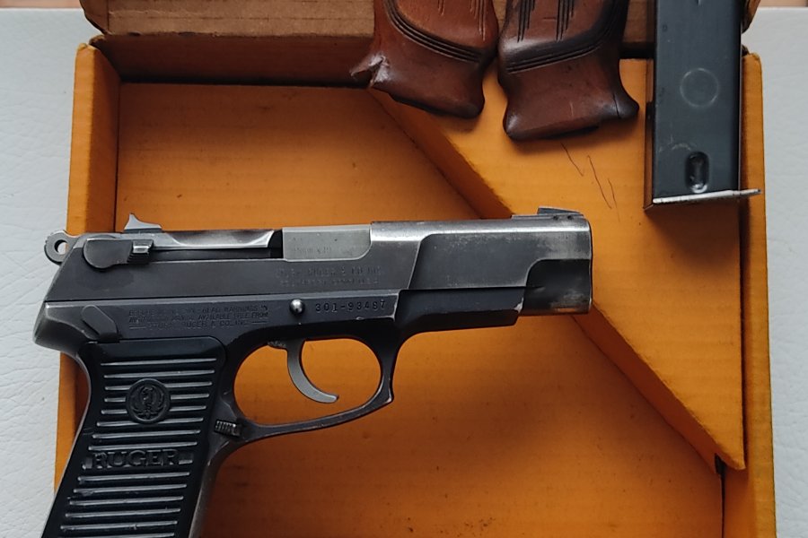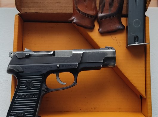 Emekli Polis Memurundan orjinal kitapçığı, kutusu, çift şarjörü ve ayrıca yedek ahşap kabzeleri ile birlikte satılık 301 serisi Amerikan Ruger marka tabanca.