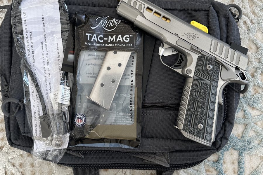 KIMBER 1911 STAINLESS 2 , 5.25 inch . Ve 7+1 kapasiteli 45 ACP Sıfır kutusu , yedek şarjörü broşürleri , silah kilidi ve tüm aksesuarları ile .