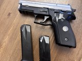 ALMAN MALI.KUTU İÇİ EKSİKSİZ.SİG SAUER P229 TWO TONE MODELİ. 9X19 MM MÜHİMMAT KULLANIR. 2 ADET 13+1 KAPASİTELİ ŞARJÖRÜ BULUNMAKTA OLUP 9X19 MM MÜHİMMAT KULLANIR.SİLAHIMIN SÜRGÜSÜ PASLANMAZ VE MONOBLOK ÇELİKTİR.TETİK AĞIRLIĞI 1600 GRAMDIR. SİLAHIM ORJİNALDİR.SONRADAN SÜRGÜLERİ BOYANARAK TWO TONE YAPILAN ÖNCESİ SİYAH RENKLİ ALSO MODELİ İLE FİYAT VE ORJİNALLİK KIYASLAMASI YAPMAYINIZ. RUHSAT İŞLEMLERİNİ TAMAMLAMIŞ SİLAH SATIN ALMA YETKİ BELGESİ HAZIR KİŞİLER ARAYABİLİRLER.