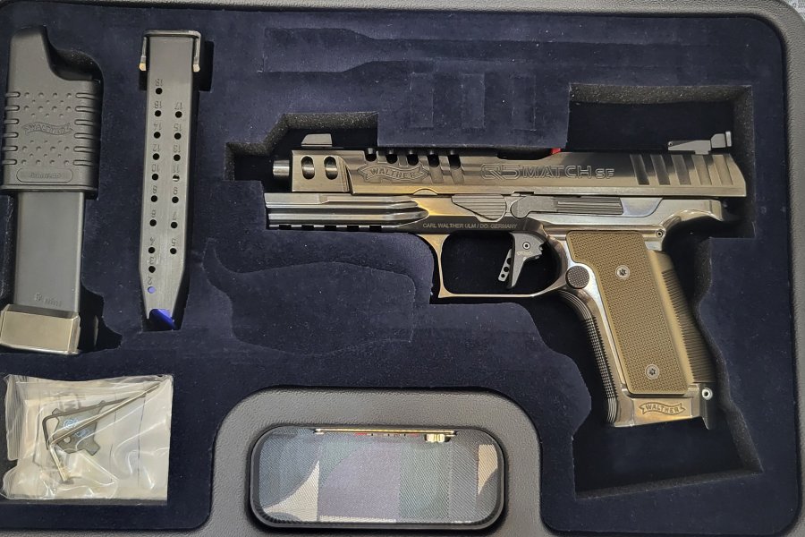 Walther Q5 Match SF (Steel Frame) Black Diamond, Walther'in "Meister Manufaktur" serisine ait özel, yüksek performanslı ve estetik odaklı bir yarı otomatik tabancasidır. Bu model çelik gövdeli Q5 Match'in geliştirilmiş ve lüks bir versiyonudur. En dikkat çekici özelliği, DLC (Diamond-Like Carbon - Elmas Benzeri Karbon) kaplamaya sahip olmasıdır. Bu kaplama hem aşırı dayanıklılık sağlar hem de yüksek cilalı, şık ve parlak siyah bir görünüm sunar. Dayanıklılık, denge ve geri tepmeyi azaltmak için tam çelik (Steel Frame) gövdeye sahiptir. Kabza kısmı, wrap-around (saran) panel ile tek parça hissi verir. Walther'in ünlü "Quick Defense" tetik sistemi ile donatılmıştır. Çok hafif, kısa ve net bir tetik çekişi sunar. 5 inç (127 mm) uzunluğunda, hassas işlenmiş namluya sahiptir. 9mm kalibreli modelde 17+1 mermi kapasitesine sahip şarjörler kullanır. Agirligi yaklasik 1180-1200 gramdir.