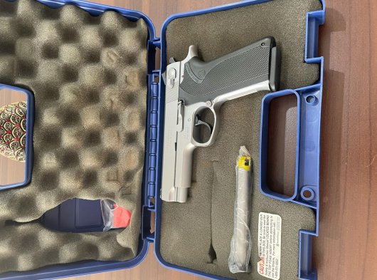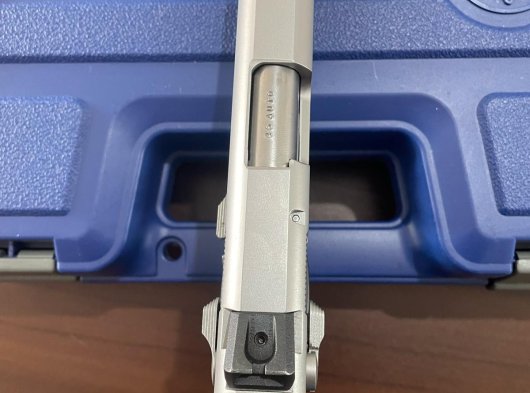 Silah permi ile Amerika'dan getirilmiş olup ,Türkiye'de nadir bulunan silahlardandır.En son imal edilen 4566 model olup ,45'lik silahların en sağlam ve en zariflerindendir.Deneme atışı haricinde kullanılmamış ve bele takılmamış olup,tamamen sıfır tabancadır.Orjinal çantasında muhafaza edilmektedir.Orjinal yedek şarjörü vardır.Kapasite 8+1 dir.